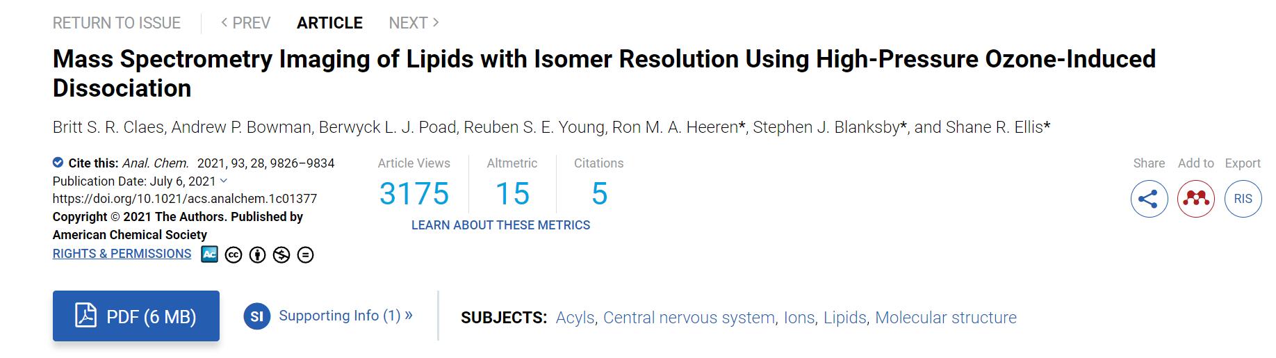 使用美國2B 106-L的論文:使用高壓臭氧誘導(dǎo)解離的異構(gòu)體分辨率的脂質(zhì)質(zhì)譜成像