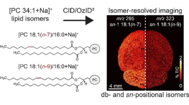 組織內(nèi)脂質(zhì)的質(zhì)譜成像(MSI)在生物分子發(fā)現(xiàn)和組織病理學(xué)應(yīng)用方面具有重要潛力。然而,傳統(tǒng)的MSI技術(shù)受到了磷脂區(qū)域異構(gòu)體的普遍存在的挑戰(zhàn),這些異構(gòu)體僅在碳-碳雙鍵的位置和/或脂肪酰基與甘油主鏈的相對位置(即sn位置)上有所不同。成像實(shí)驗(yàn)中無法解析異構(gòu)體脂質(zhì)掩蓋了潛在的復(fù)雜性,導(dǎo)致代謝信息的嚴(yán)重丟失。在此,臭氧誘導(dǎo)解離(OzID)在能夠進(jìn)行基質(zhì)輔助激光解吸/電離(MALDI)的遷移率啟用四極飛行時(shí)間(Q-TOF)質(zhì)譜儀上實(shí)現(xiàn)。利用Q-TOF中的離子遷移區(qū),獲得了高數(shù)量密度的臭氧,導(dǎo)致∼與早期MALDI OzID實(shí)施相比,OzID產(chǎn)物離子豐度提高了1000倍。將這種提升轉(zhuǎn)化為成像導(dǎo)致采集率提高了50倍,有助于磷脂異構(gòu)體分辨率的大面積繪圖。繪制大鼠腦切片的異構(gòu)體分布圖揭示了脂質(zhì)異構(gòu)體群體的不同分布,其雙鍵和sn位置不同的異構(gòu)體的區(qū)域特異性關(guān)聯(lián)。此外,由臭氧和碰撞誘導(dǎo)的連續(xù)離解產(chǎn)生的產(chǎn)物離子在非經(jīng)典sn-1位置酯化的不飽和脂肪酰基鏈中實(shí)現(xiàn)了雙鍵分配。